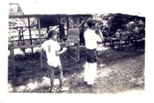 Walter and Rob playing ‘robbers’ with a toy pistol in 1941.